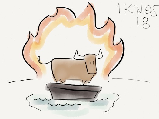 We talked about 1 Kings 18 this week in our focus passage and in it we see a bold challenge of the prophet Elijah against all the false prophets of Baal. It is good to remember, as our discussion led us to, that not all idols are cast in gold or silver. We all have idols that are far more sneaky that find places to take root in our lives. We give too much time and attention to certain activities, we place our trust and hope in things or people that do not deserve it, or we find our worth outside of the love of God. Whenever we do so we are making something into an idol–and this can even happen to good things.